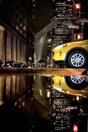 Broadway and Fulton Streets. Oculus. Taxi. One World Trade.