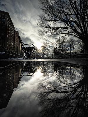 Riverside Drive, upper west side. after the snow flurry. Puddle reflection. iPhone 16Pro